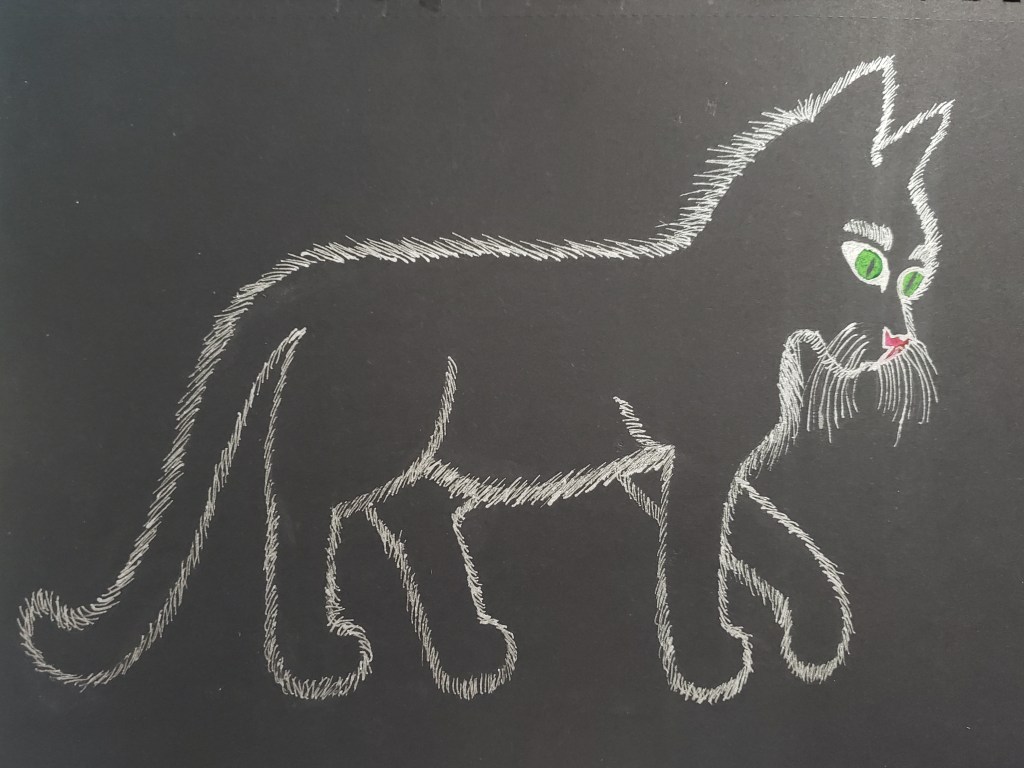 Kitten Outline Gel Pen on Black Paper