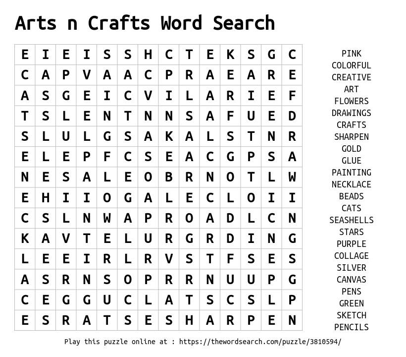 Enjoy this Arts n Crafts Word Search Puzzle.